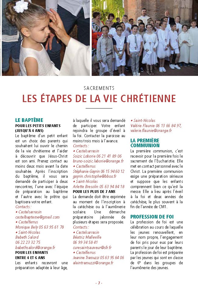 À tout âge, les adultes qui le demandent peuvent recevoir les sacrements du baptême, de la communion, de la confirmation.