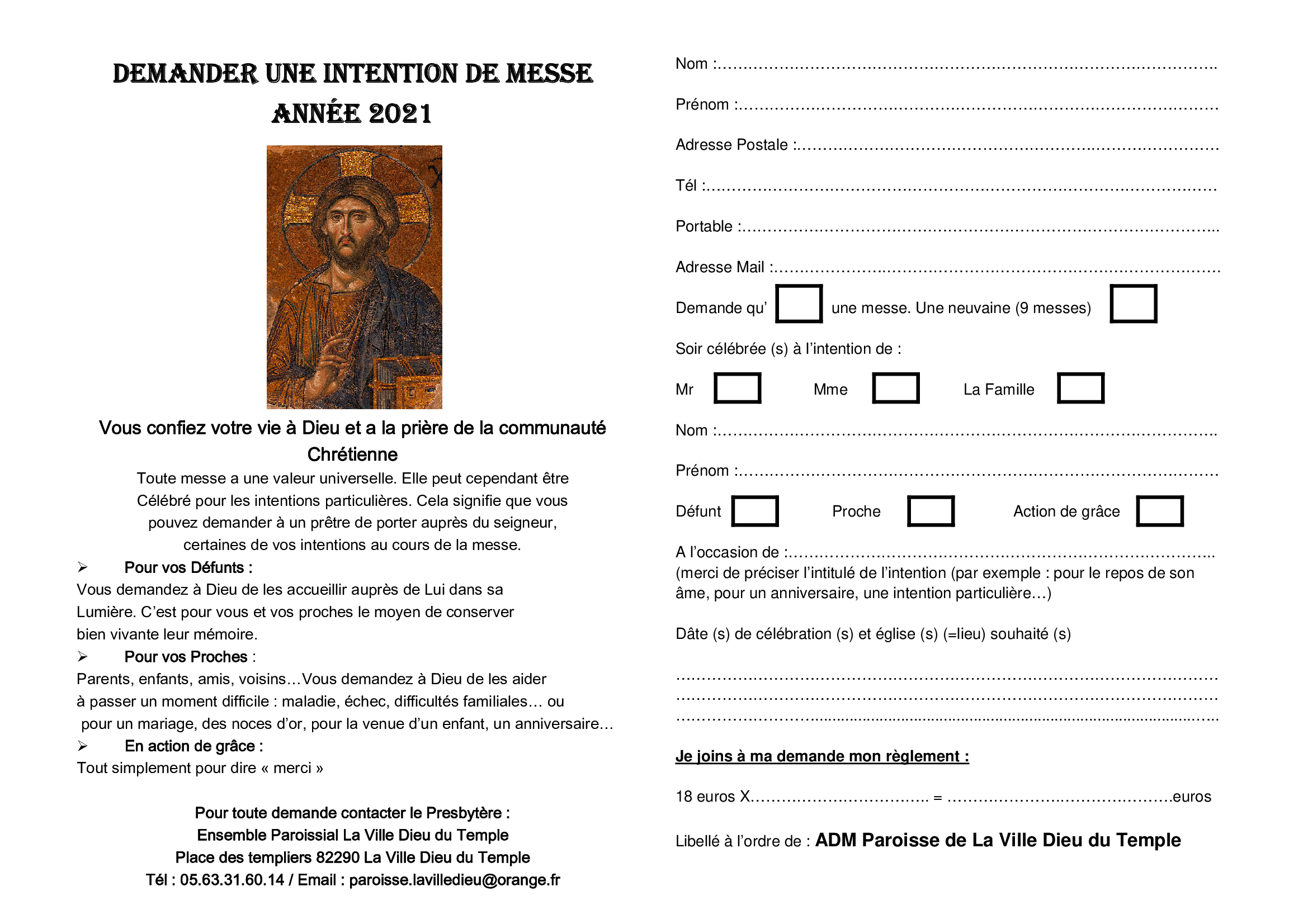 Ensemble paroissial La-Ville-Dieu-du-Temple Castelsarrasin Partager Sur Facebook Sur Twitter Sur Linkedin Sur Whatsapp Par Email Diocèse de Montauban Castelsarrasin La-Ville-Dieu-du-Temple Eglises du secteur La Ville Dieu, Les Barthes, Barry d’Islemade, Albefeuille Lagarde, Saint Porquier (ensemble paroissial de Castelsarrasin) CALENDRIER des MESSES HORAIRES MESSES SEMAINE SAINTE INTENTIONS DE MESSES La paroisse Accueil paroisse 2 Place des Templiers, 82290 La ville-Dieu-du-Temple 05 63 31 60 14 paroisse.lavilledieu@orange.fr Ensemble paroissial